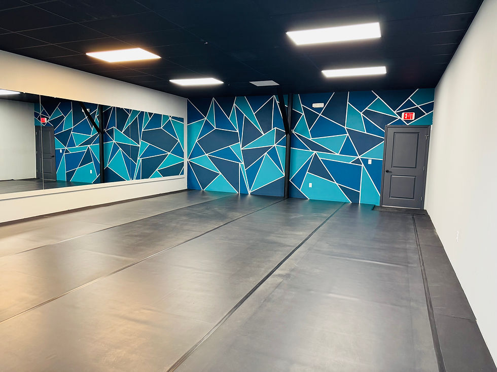 Another large dance room hosting many dance classes throughout the week. You can't miss the awesome mosaic themed feature wall!